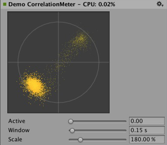It enables reading an array of floating-point data from the native plugin. The plugin system doesn’t care about what that data is, as long as the request doesn’t slow down the UI or the native code. For the Equalizer and Multiband code, a utility class called FFTAnalyzer makes it easy to feed in input and output data from the plugin and get a spectrum back. This spectrum data is then resampled by GetFloatBufferCallback and handed to the C# UI code. The data must be resampled so that the FFTAnalyzer runs the analysis at a fixed frequency resolution while GetFloatBufferCallback just returns the number of samples requested, which is determined by the width of the view that’s displaying the data. For a simple plugin that has a minimal amount of DSP code you might want to use the CorrelationMeter plugin, which plots the amplitude of the left channel against the amplitude of the right channel to show the stereo effects of the signal.