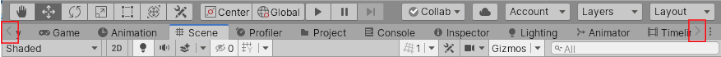 当打开的选项卡数量超出 Unity 视图选项卡区域的显示范围时,将显示小导航箭头。单击箭头可以滚动显示打开的选项卡: