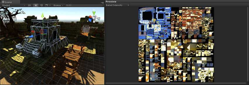 It is important to be able to view the lightmap UVs that are being used, and Unity has a visualization tool to help you with this. First, open the Lighting window (menu: Window > Rendering > Lighting) and tick the Auto checkbox at the bottom. This ensures that your bake and precompute are up-to-date, and outputs the data that is needed to view the UVs. Wait for the process to finish (this can take some time for large or complex Scenes).