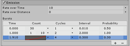 在 Unity 2018.3 中向 Particle System Emission 模块添加了爆发概率 NewIn20183