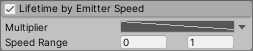 Since this module is part of the Particle System component, you access it through the ParticleSystem class. For information on how to access it and change values at runtime, see the Lifetime by Emitter Speed module API documentation.