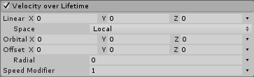 Velocity over Lifetime 模块可控制粒子在其生命周期内的速度。