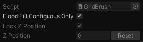This visual element displays the inspector for the active Brush for painting on Tilemaps. This allows you to change the properties of the active Brush. The inspector shown is dependent on the Editor for the active Brush.