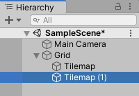 Tilemap 子游戏对象由 Tilemap 组件和 Tilemap Renderer 组件组成。Tilemap 游戏对象是绘制瓦片的地方。