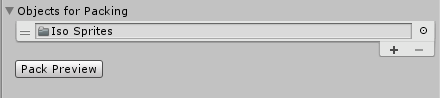向精灵图集添加精灵,方法是在精灵图集的 Inspector 窗口中将精灵拖到 Objects for Packing 列表中。
