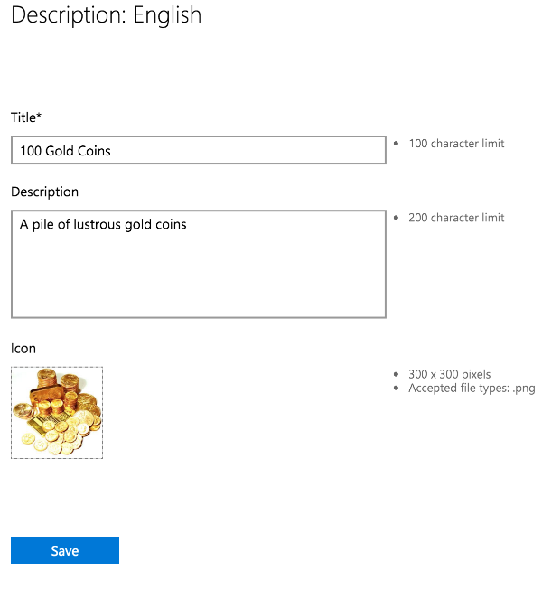 填写 Title、Description 和 Icon。
