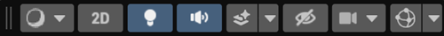 在 Render Mode 菜单的右侧有三个按钮,用于打开或关闭 Scene 视图的某些选项: