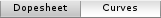 On the right side of the Animation View is the timeline for the current clip. The keyframes for each animated property appear in this timeline. The timeline view has two modes, Dopesheet and Curves. To toggle between these modes, click Dopesheet or Curves at the bottom of the animated property list area: