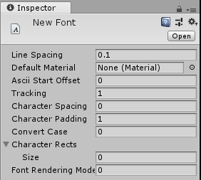 要创建字体材质,您需要将字体作为纹理导入,然后将该纹理应用于材质,再将字体材质拖到 Default Material 部分。