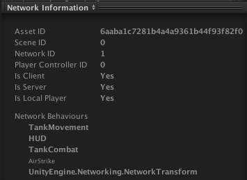 在运行时,此处将显示更多信息(禁用的 NetworkBehaviour 以非粗体显示):