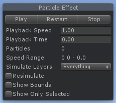 Scene 视图中的 Particle Effect 面板包含一些关于预览粒子系统的附加选项。