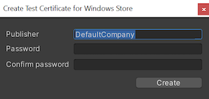 Click Create. The Create Test Certificate for Microsoft Store dialog window appears.
