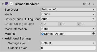 | Sorting Layer | 设置瓦片地图的 Sorting Layer)。从下拉框中选择现有的排序图层,或创建新的排序图层。 |