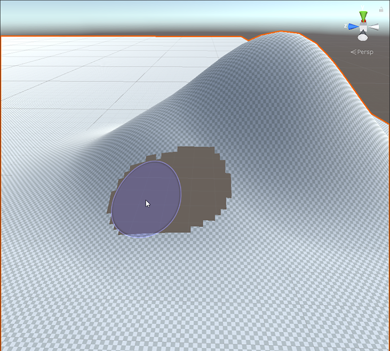 地形孔洞可使用光照、物理和导航网格 (NavMesh) 烘焙。Unity 会在您绘制孔洞的区域中丢弃地形信息以确保光照、地形碰撞体和烘焙导航网格的准确性。