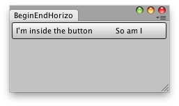 public class EndHorizontalCS : EditorWindow { [MenuItem("Examples/Begin-End Horizontal usage")] static void Init() { EditorWindow window = GetWindow(typeof(EndHorizontalCS)); window.Show(); }