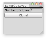 void OnGUI() { sizeMultiplier = EditorGUILayout.IntField("Number of clones:", clones);