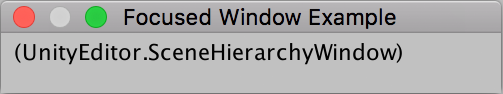 void OnGUI() { GUILayout.Label(EditorWindow.focusedWindow.ToString()); } }