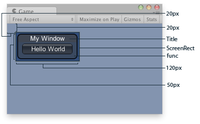 public class ExampleScript : MonoBehaviour { Rect windowRect = new Rect(20, 20, 120, 50);