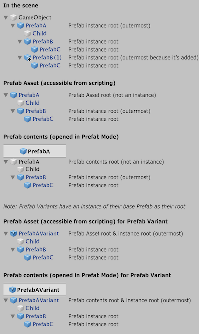 哪些对象是预制件实例根的概述。
