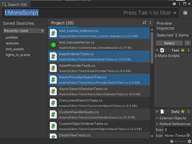 [MenuItem("Examples/ISearchView/AddSelection")]